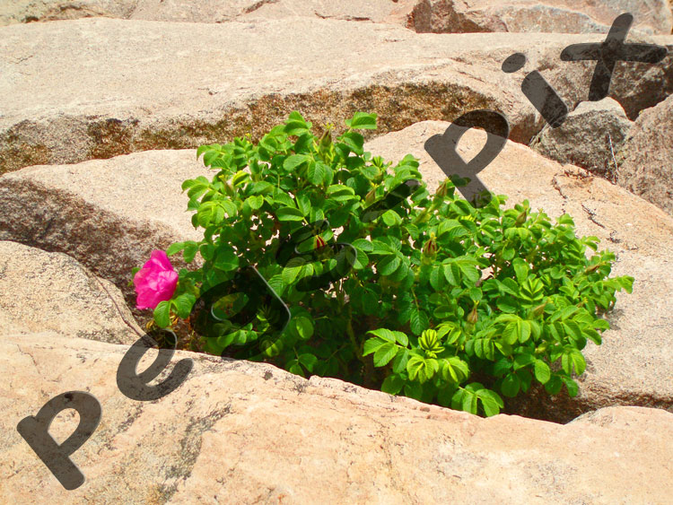 Lone Plant Among Rocks